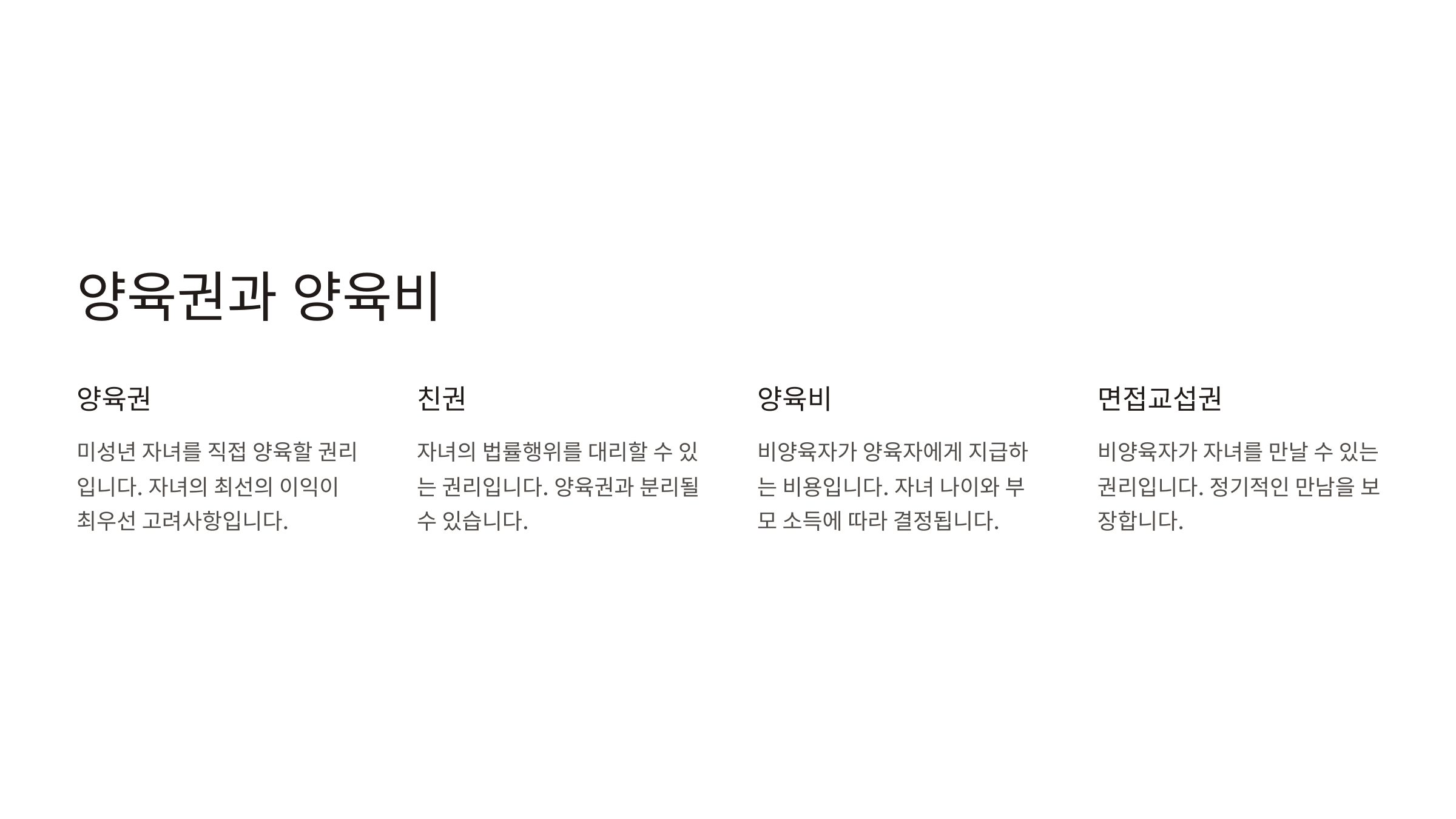 | 면접 교섭권 | 비양육 부모도 자녀를 만날 권리 보장 |