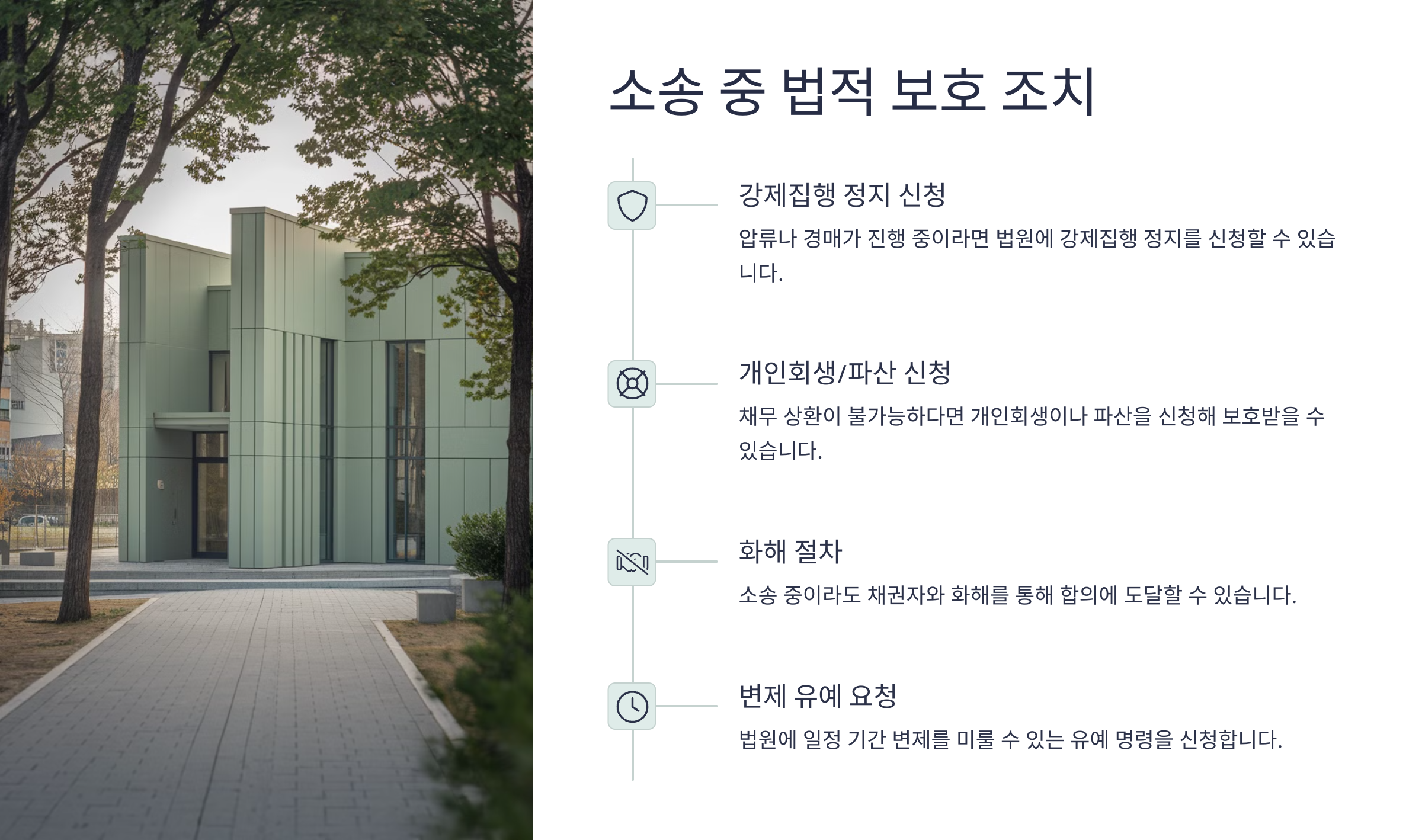 이제부터 소송 중 채무자가 활용할 수 있는 법적 보호 조치들을 살펴볼게요. 📜