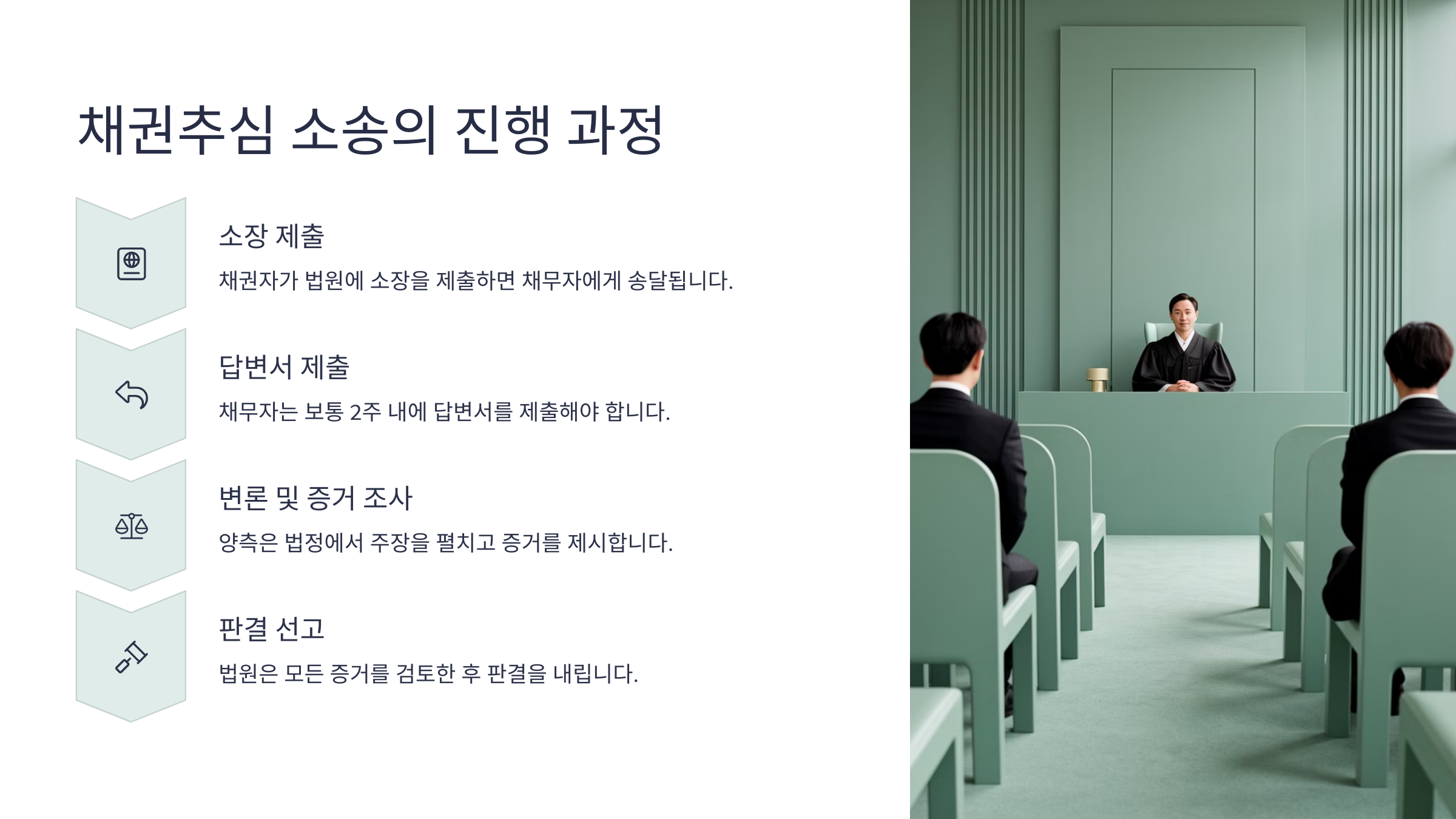이 과정에서 채무자가 적극적으로 대응하면 부당한 채권추심을 막을 수도 있고, 적절한 변제 계획을 마련할 수도 있어요. 소송이 어떻게 진행되는지 자세히 알아볼까요? 🧐