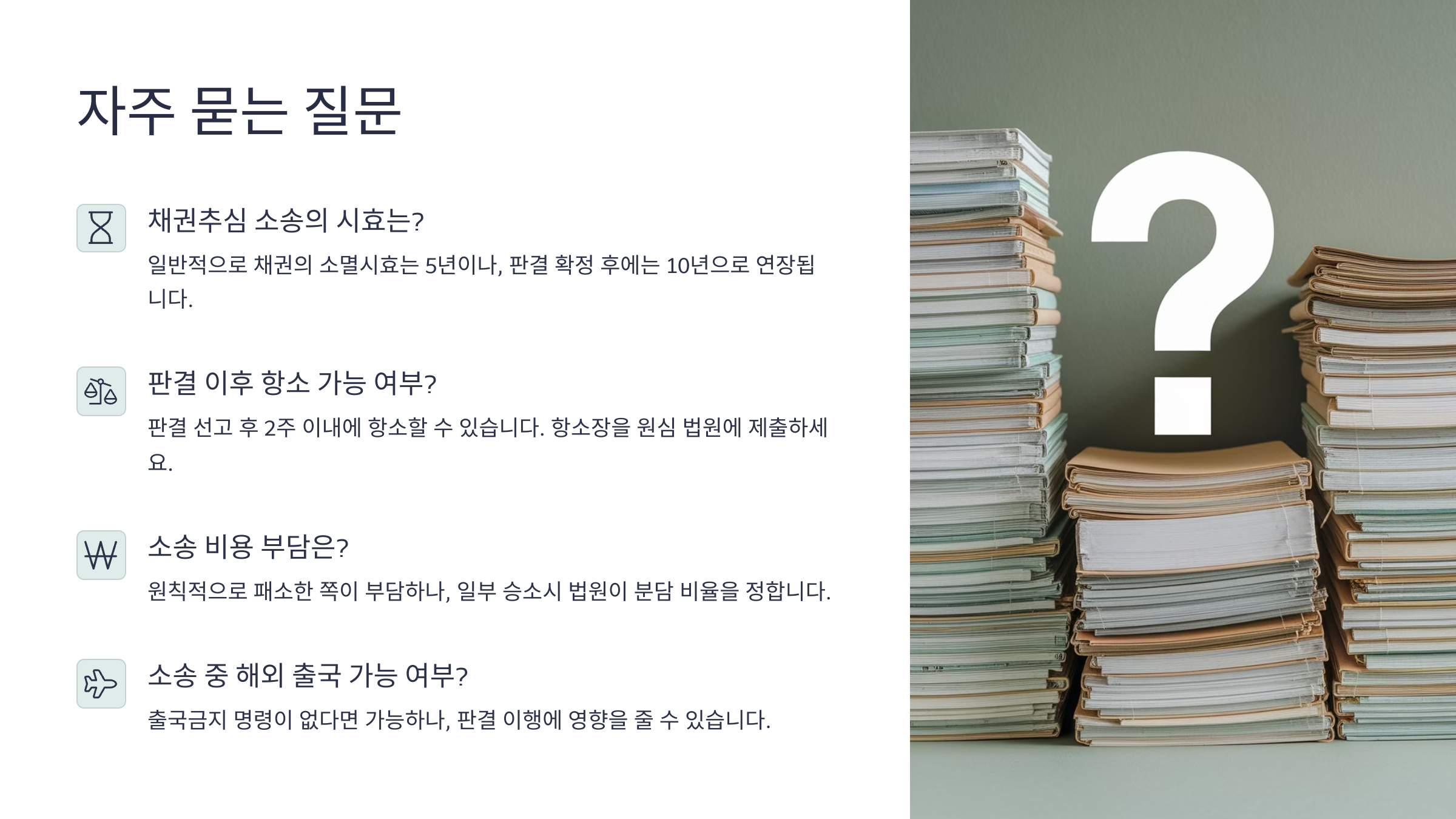 채권추심 소송과 관련해 많은 사람들이 궁금해하는 질문들을 모아봤어요! 💡